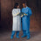 - Knee length with snap front closure, knit collar, long sleeves with knit cuffs, and 3 pockets