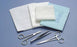 - Includes: (2) Absorbent Towels; (5) 4 X 4 inch Gauze Sponges; (1) Polylined Sterile Field; (1) Polylined Fenestrated Drape; (1) 5 inch Floor-Grade Baumgartner (serrated jaw) Needle Holder; (1) 4½ inch Sharp / Sharp Scissors; (1) 5 inch Metal Tissue Forceps