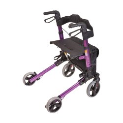 HealthSmart® 4-wheel rollator, 8 in. Front, 7 in. Rear Wheel, 31 - 36 in. Handle, Purple, 300 lbs, Aluminum Frame 1 (EA)