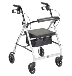 McKesson 4-wheel rollator, 6 in. Wheel, 32 - 37 in. Handle, Silver, 300 lbs, Aluminum Frame 1 (EA)