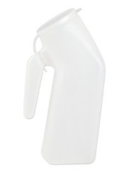 - Wide base improves standing stability, empty or full. Pronounced neck angle helps confine contents when urinal is positioned horizontally