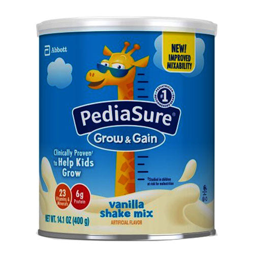 Pediasure Grow & Gain Powder, Vanilla 14.1 oz. (400 gram), 1760 Calories Per Can, 8 servings of 220 Calories. 23 essential vitamins & minerals and 6 g of protein when mixed with 3/4 cup water. Non-GMO, Gluten-free and suitable for lactose intolerance. Not intended as a sole source of nutrition, not for children with galactosemia, use as part of a healthy diet.
