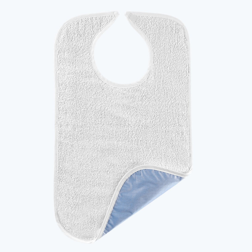 - Heavyweight bibs are made of soft, highly absorbent terrycloth and are oversized for complete protection against spills