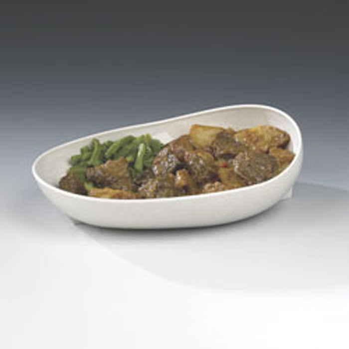 - Combination plate/bowl has a contoured lip that can be used to push food onto cutlery