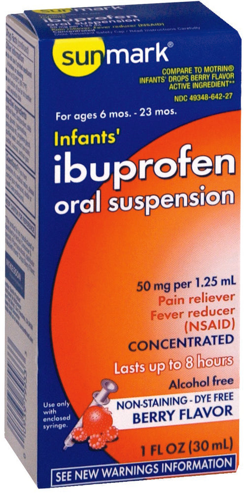 - Berry flavored ibuprofen oral suspension for babies 6 - 23 months old