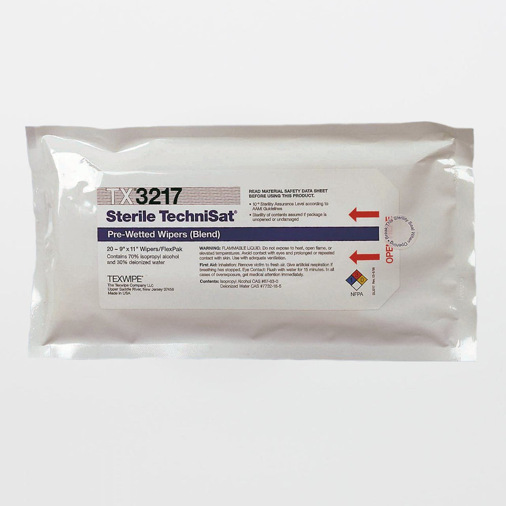 - Sterile TechniSat® TX3217 pre-wetted nonwoven cleanroom wipers are made from 45% polyester / 55% cellulose nonwoven material with a cut edge, and are cleanroom manufactured